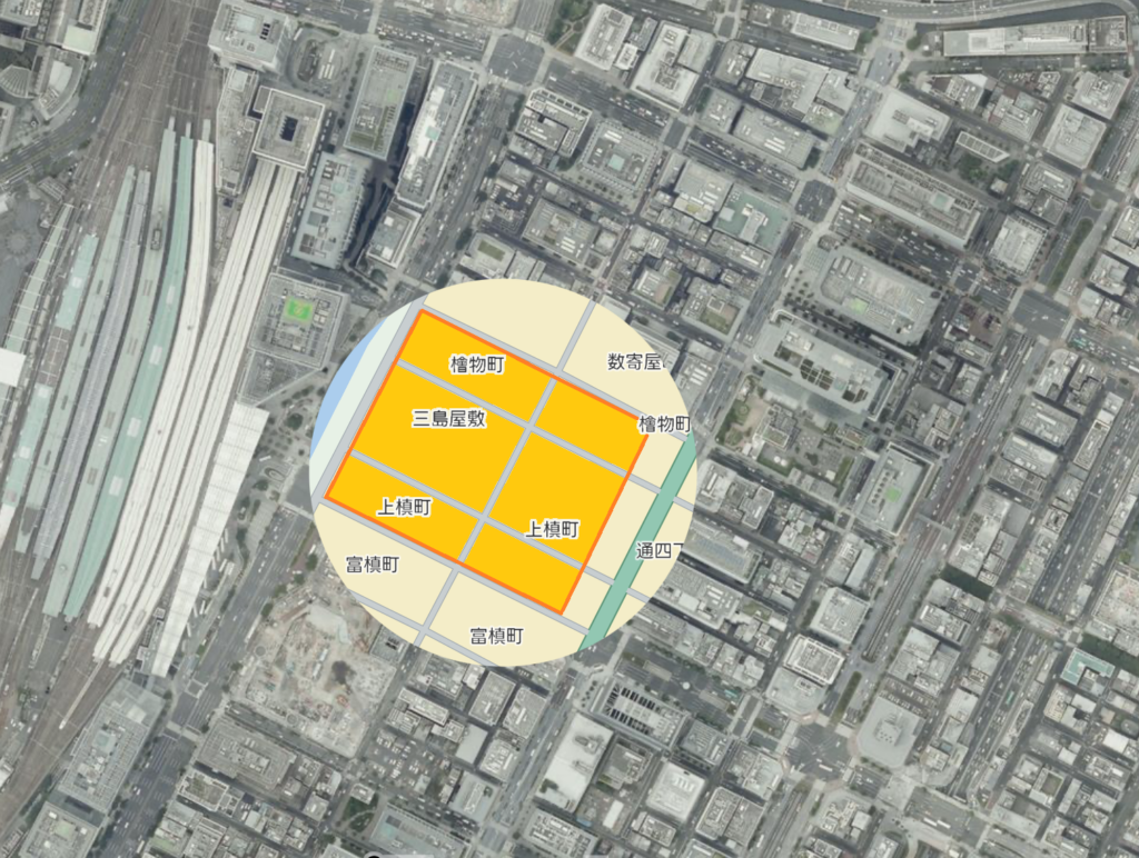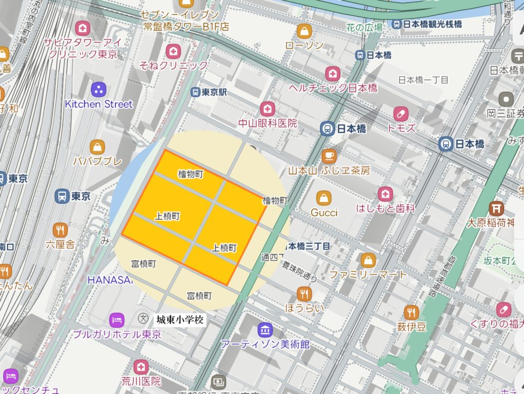 日本橋檜物町と上槇町の当時の所在地は現在の東京駅八重洲口。
